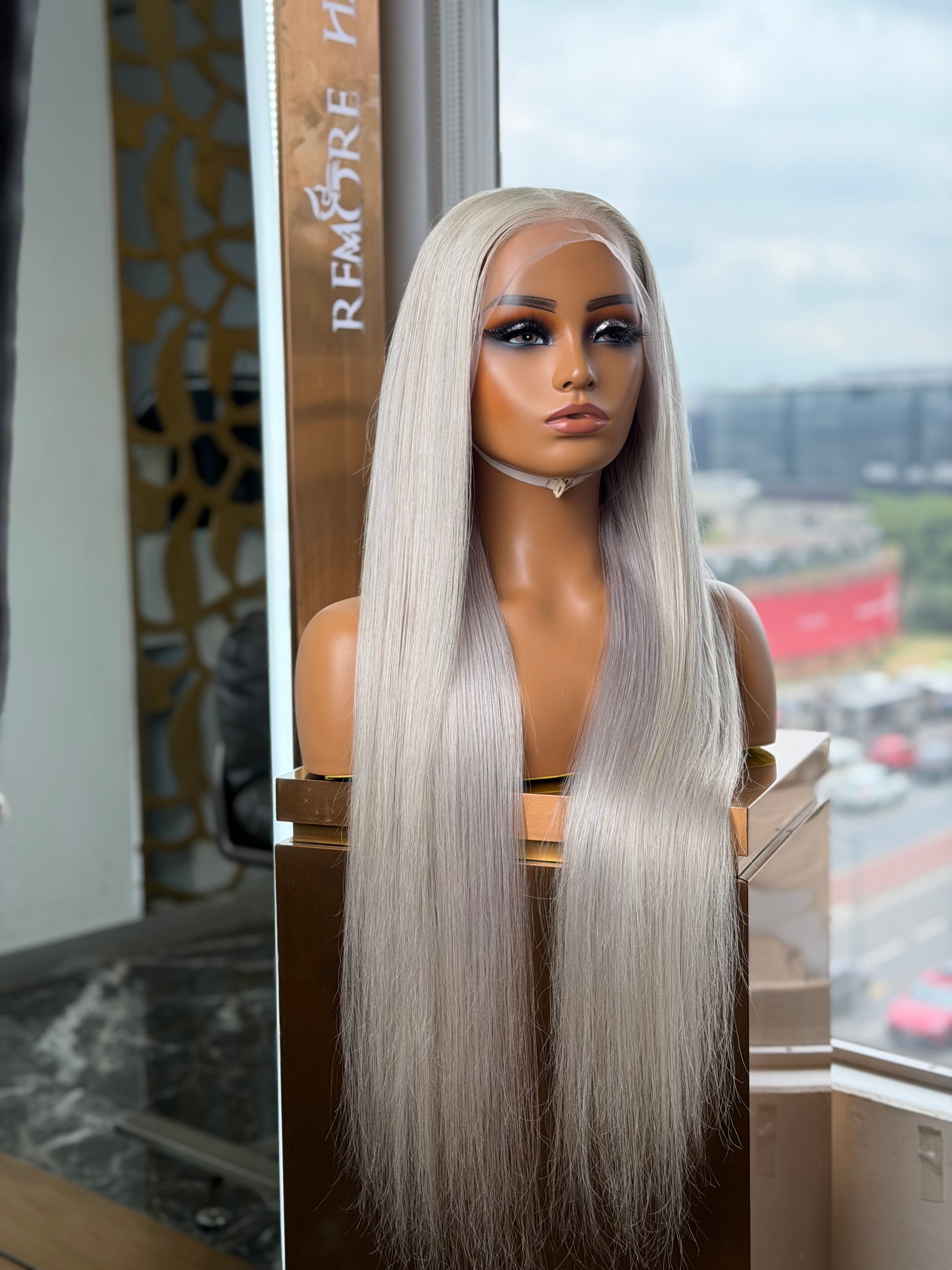 Grey Straight Full Frontal 30 Inch Wig